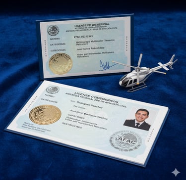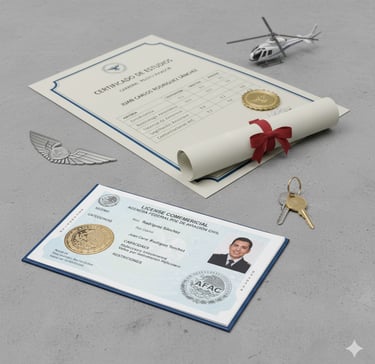 Licencia de Piloto Comercial de Helicóptero, expedida por la AFAC(Agencia Federal de Aviación Civil)