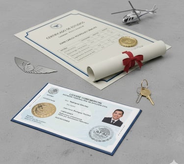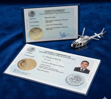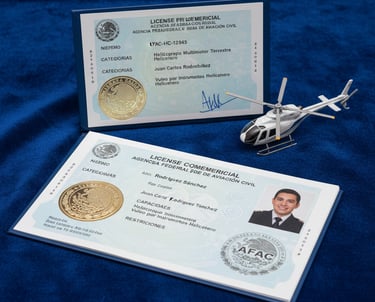 Licencia de Piloto Comercial de Helicóptero, expedida por la AFAC(Agencia Federal de Aviación Civil)